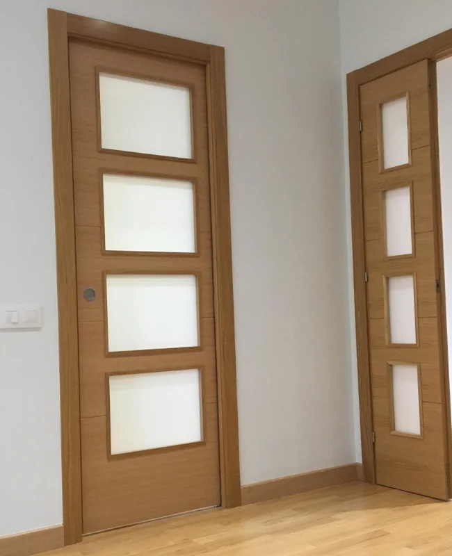 Nuestras puertas de madera con vidrio aportan luz, amplitud y un toque distintivo a cualquier espacio, fabricadas a medida en Barcelona.